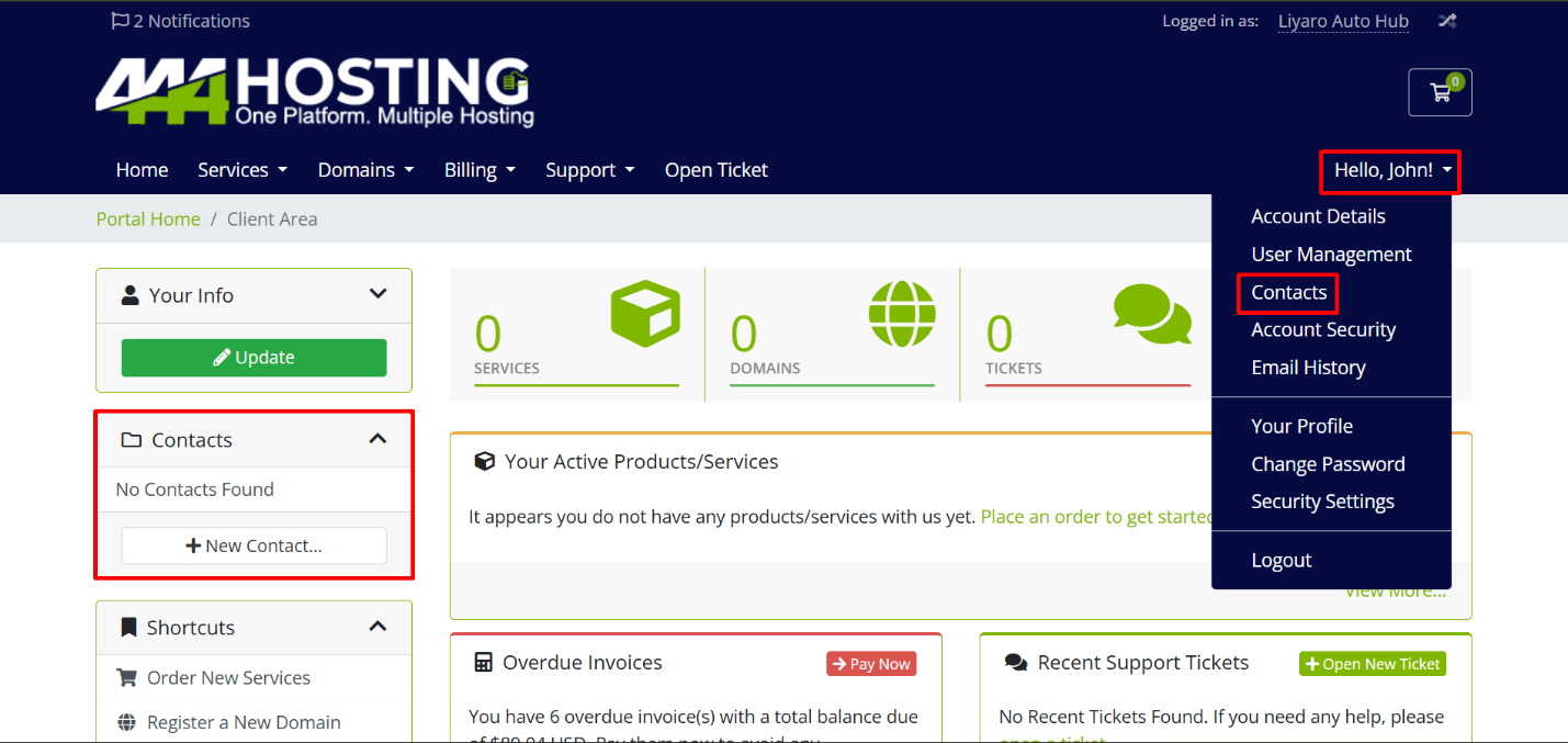 – Follow these simple steps to add a new contact and save changes in your 444Hosting Client Area.