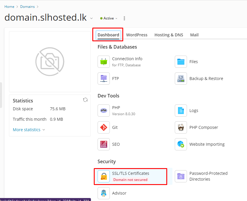 2. Select Dashboard → SSL/TLS Certificates.