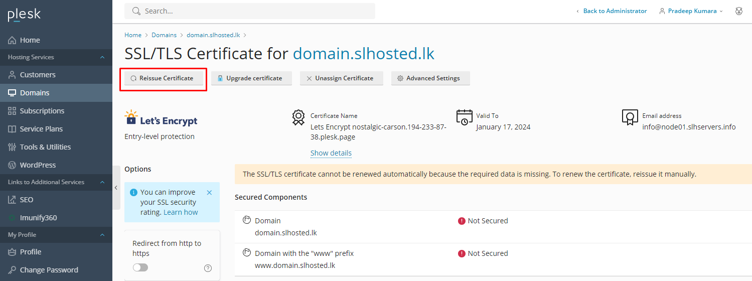 6. Select the options according to your needs and choose ‘Get it Free‘ to reissue the certificate.