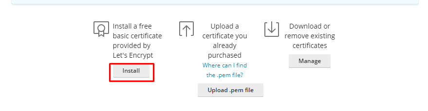 4. Click the Install button under ‘Install a free basic certificate provided by Let’s Encrypt‘.