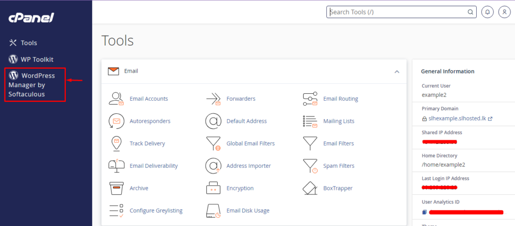 - Cpanel username and password.
