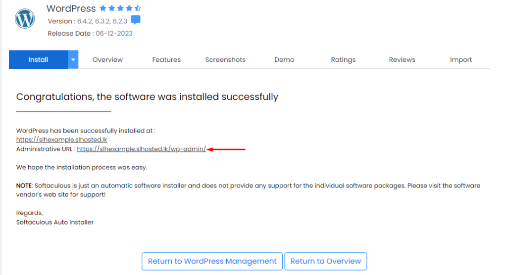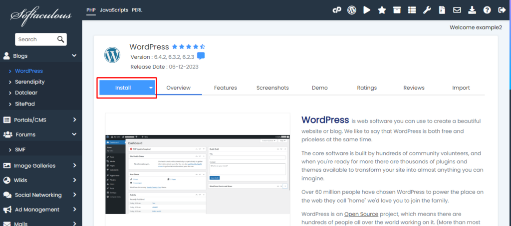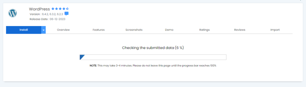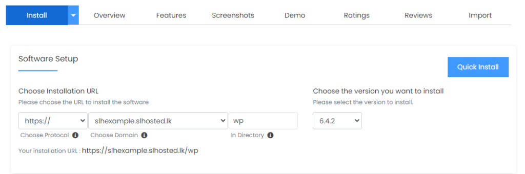 You are expected to choose the version of WordPress you desire here.