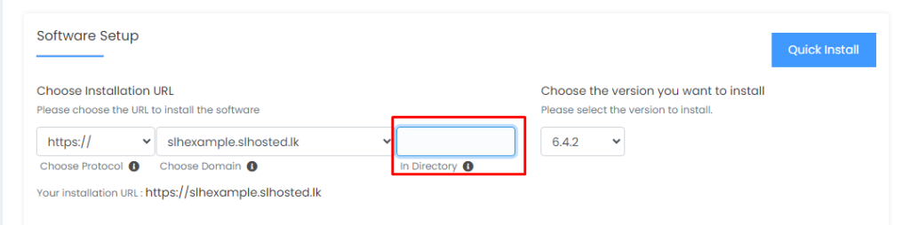If you want to install it in the ‘root directory/primary domain’ keep the input field blank.