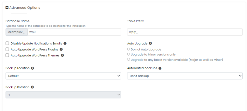 Step 4: Fill WordPress site settings detail