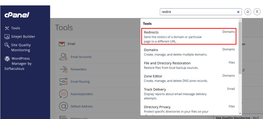 - If you have multiple domains, select the domain you want to redirect from the dropdown.
