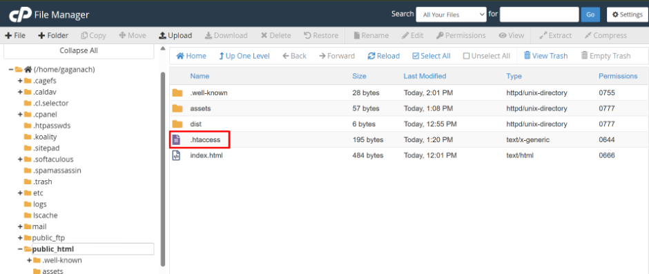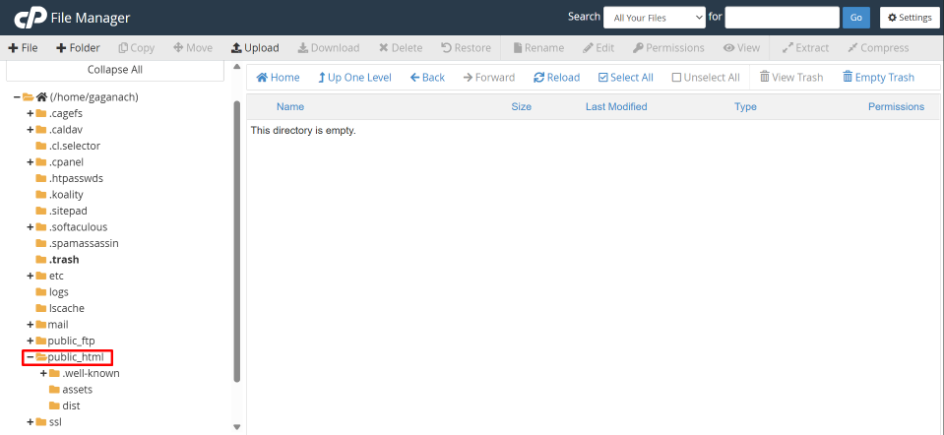 1.In File Manager, navigate to the folder you want to host your site go public_html on file manager.