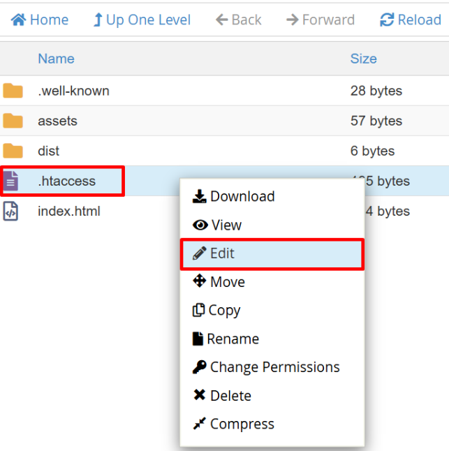 • Right click on .htaccess file and go edit. Then you can add the relevant content for your framework.