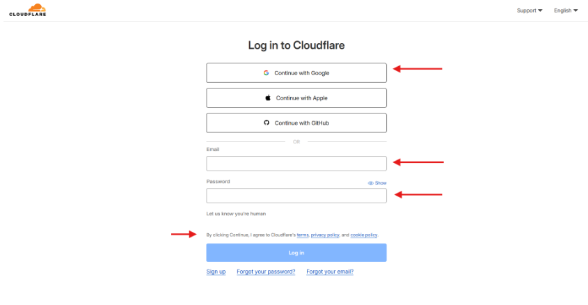 When creating your account, make sure to agree to Cloudflare’s Terms and Conditions to continue