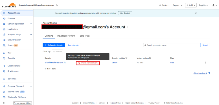 - Once you confirm, your domain will be successfully added to Cloudflare.