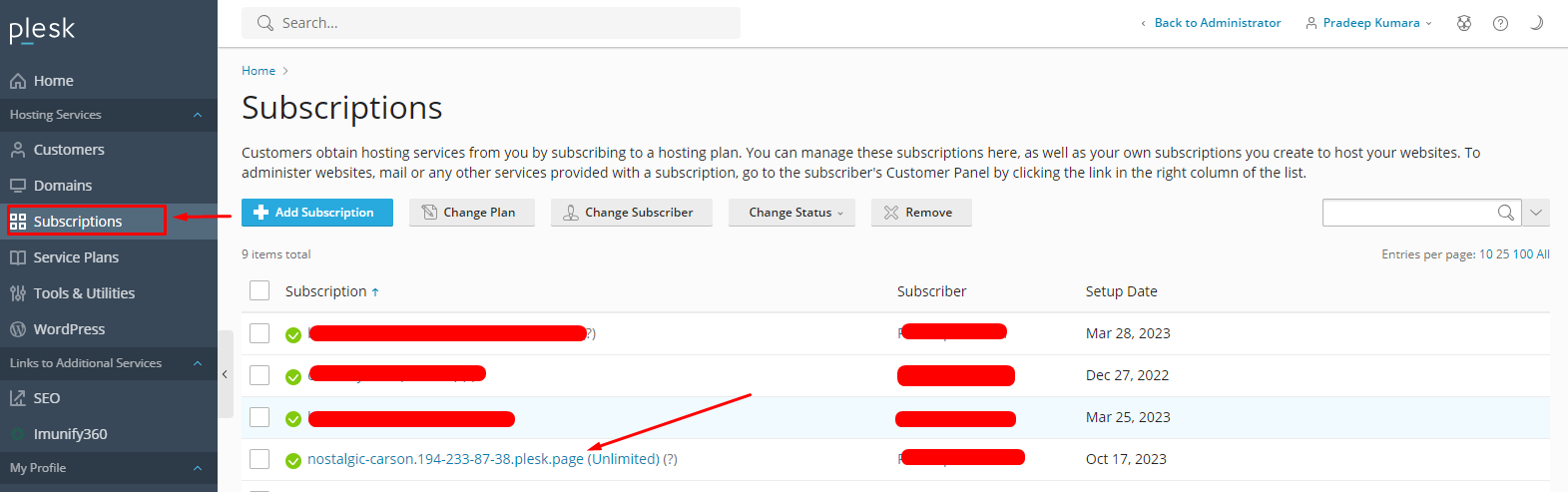 - Go to Subscriptions → Select the domain you want to change.