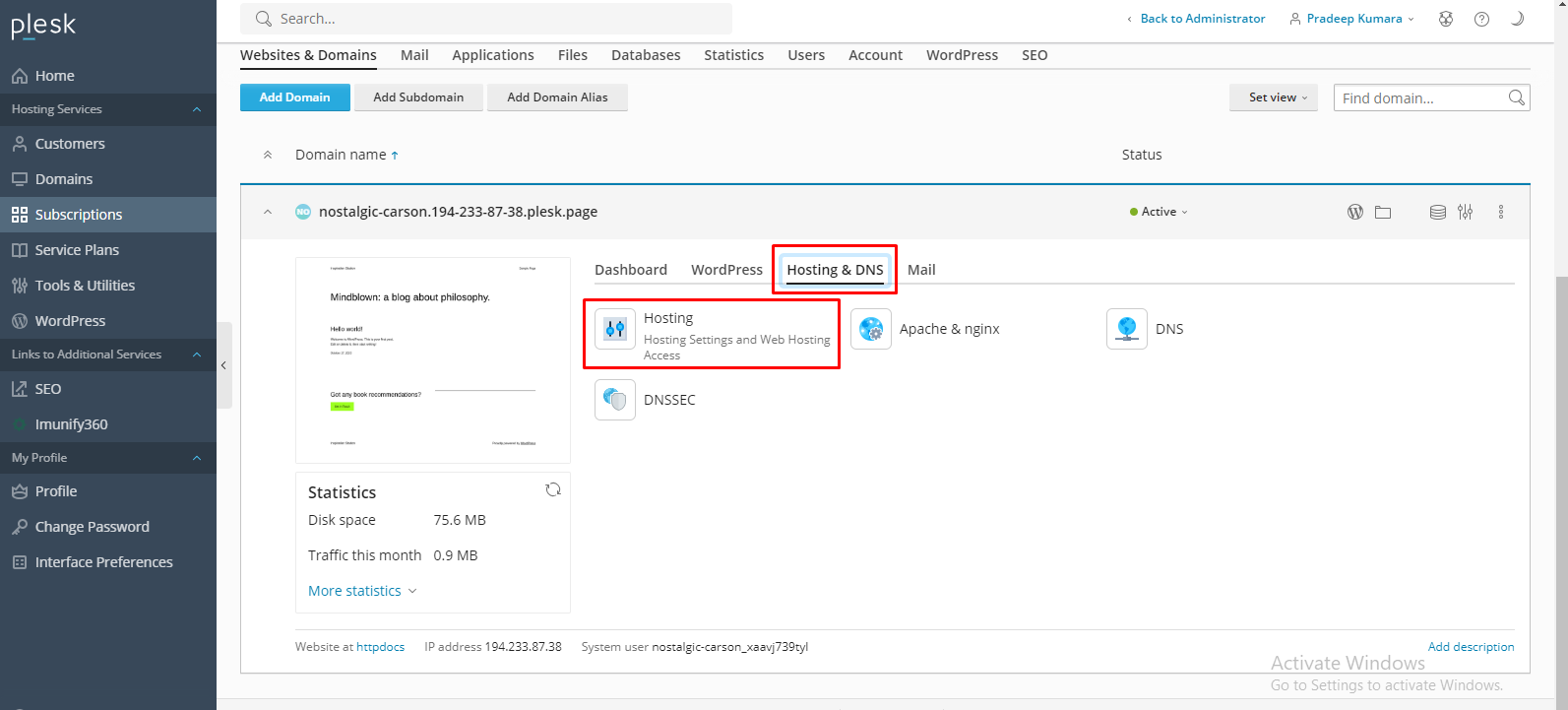 - Log in to your Plesk panel.