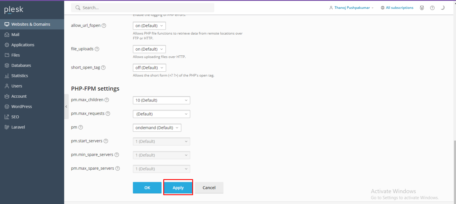 How to change PHP version in Plesk