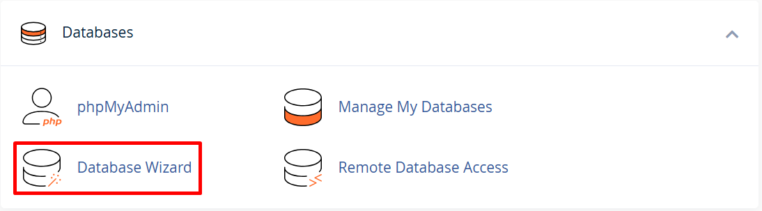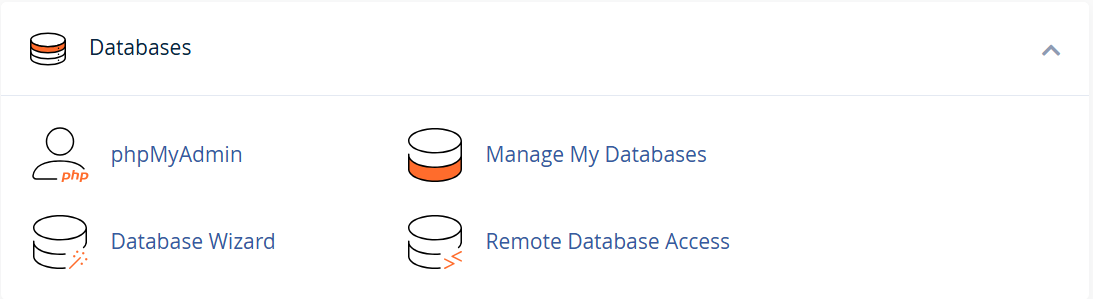 In order to start, log into cPanel and click on the MySQL databases menu in the Databases section:
