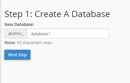 Find the Create New Database section, then simply indicate the name of the future database, and click on the Create Database button as shown in the image below.