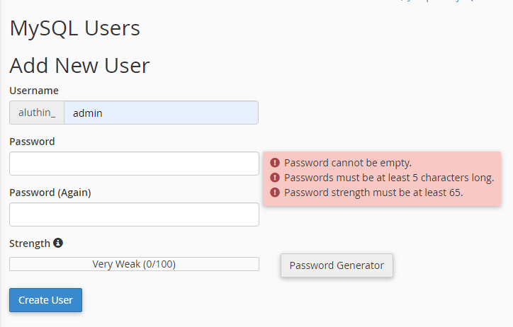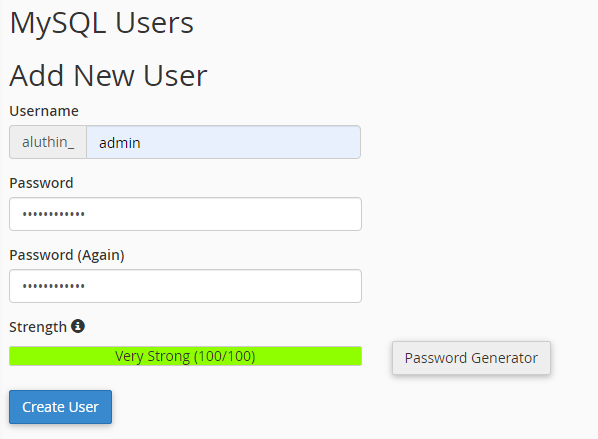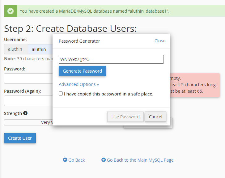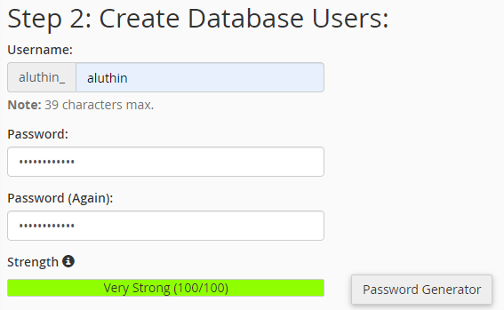 Here, when creating the user generate a strong password and make sure to save it somewhere safe for future use.