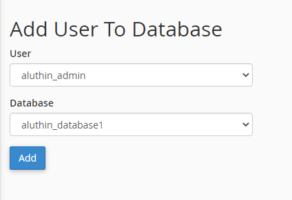 To do this, find the Add User to Database section and make sure that you choose the correct Database and User correspondingly. Once done, simply click on the Add button: