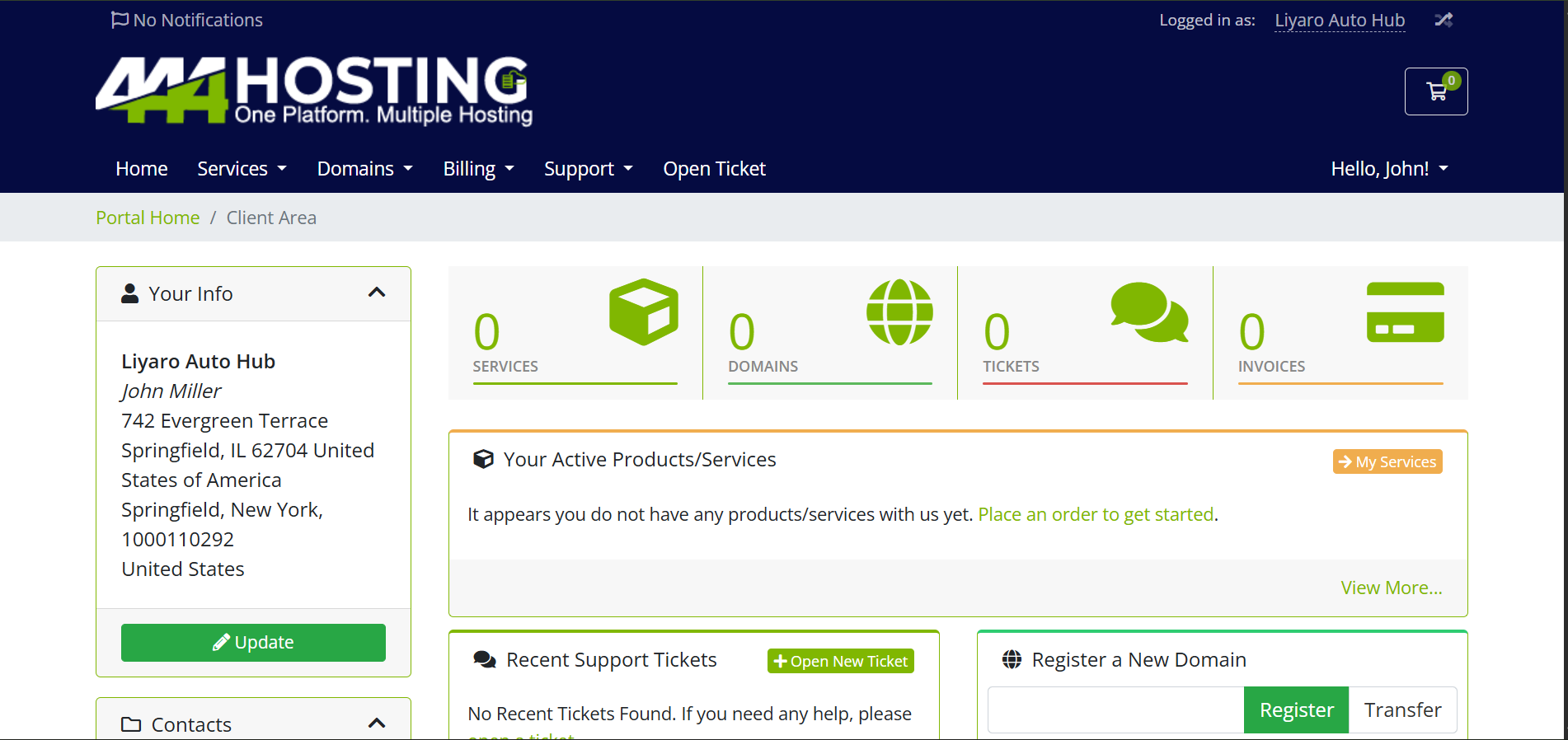 5. Now you are on your client area.