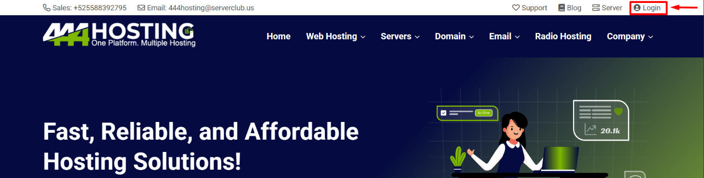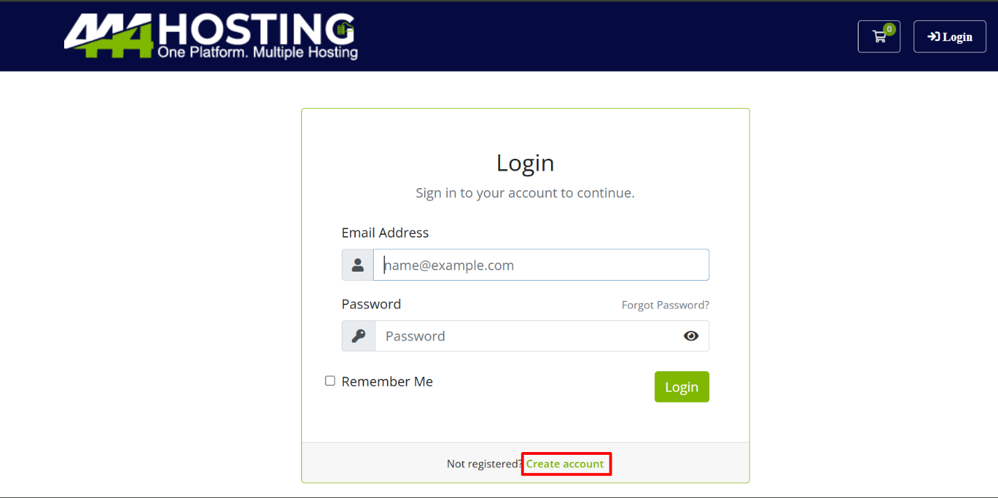 First logging to website via the site link https://444hosting.com/