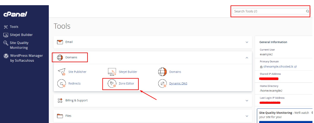 - Once you’re logged in, look for the “Domains” section on your cPanel dashboard.