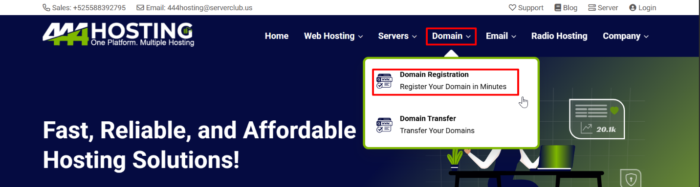1. First go to “Domain” section and select “domain registration.”