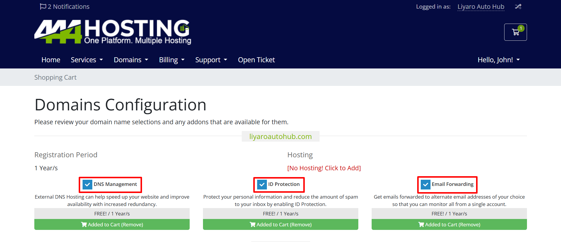 Now you can select any addons that are available for your domain and as your needs.