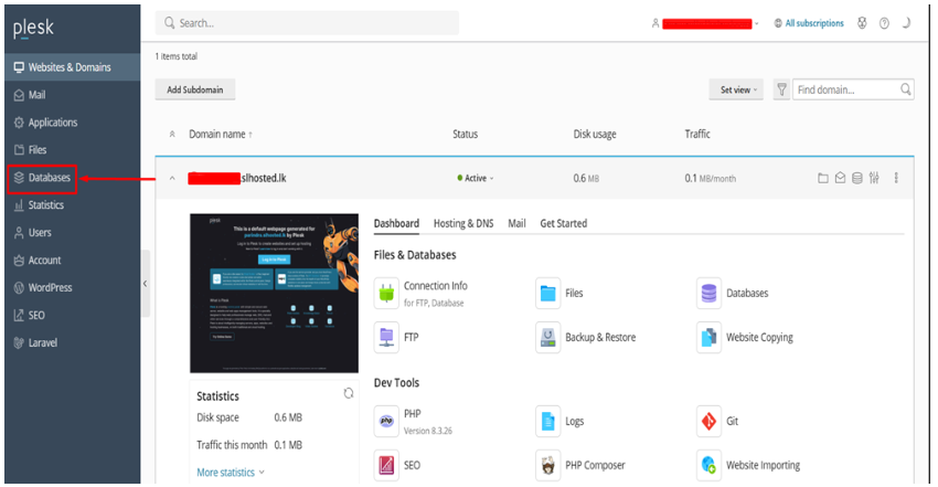 - From the left-hand menu, go to Manage Domains or Websites & Domains.