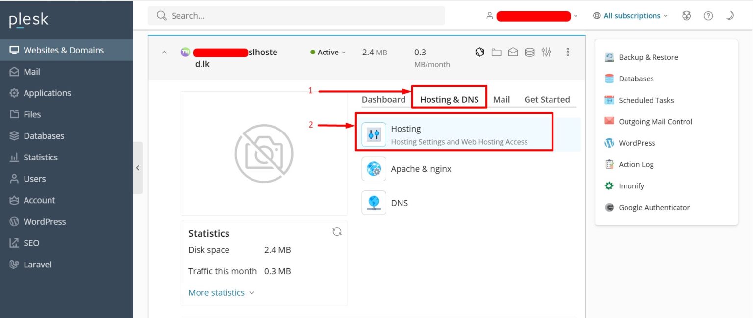 3. Click on “Hosting & DNS” –> “Hosting”