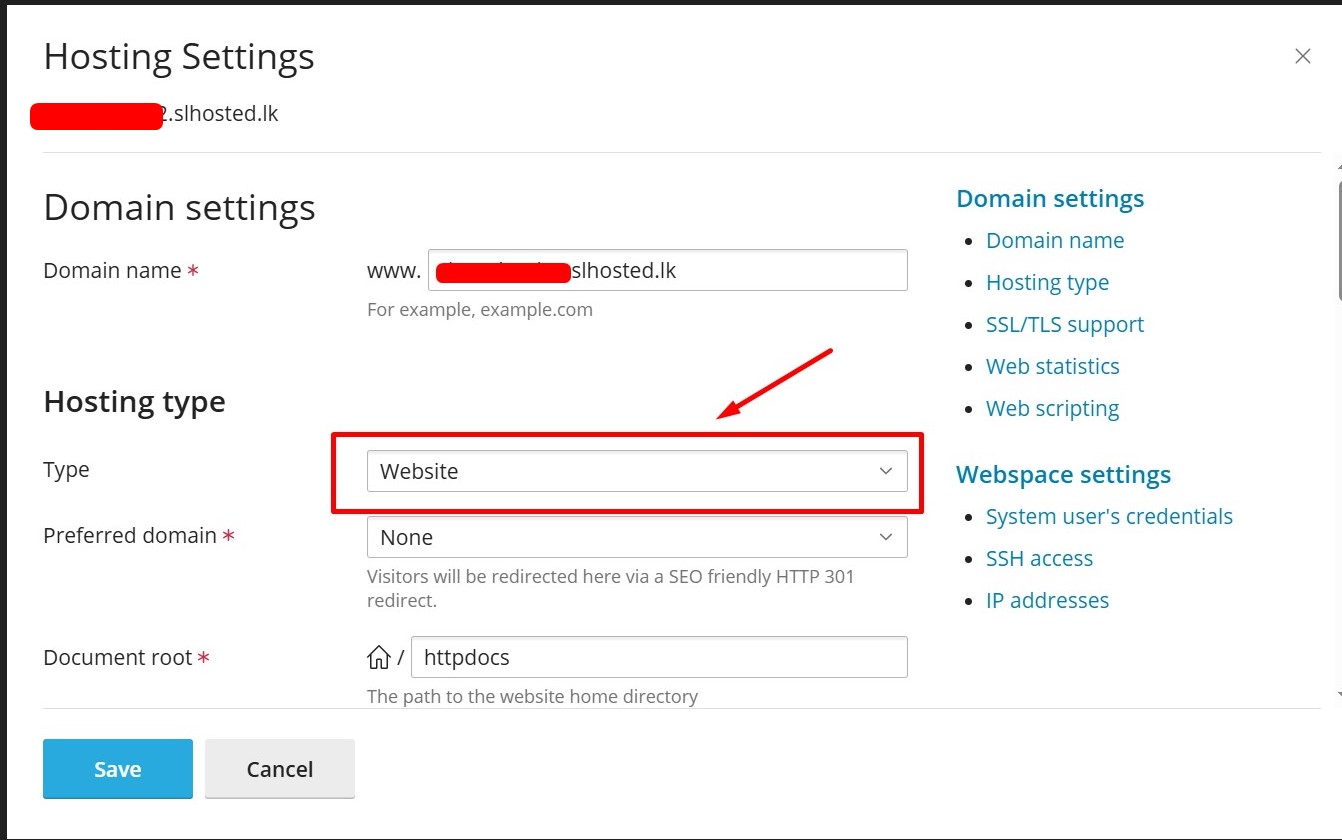 5. Change Hosting Type to “Forwarding”