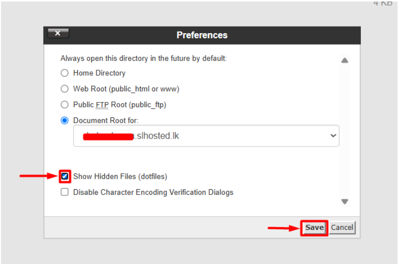3. A pop-up will appear — check the box that says: (Show Hidden Files (dotfiles)
