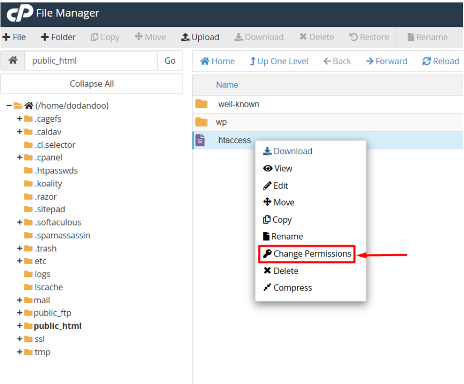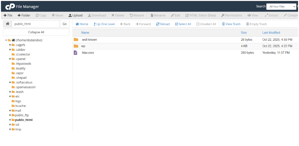 Now, you’ll see all hidden files like the .htaccess file, the .well-known file, etc..