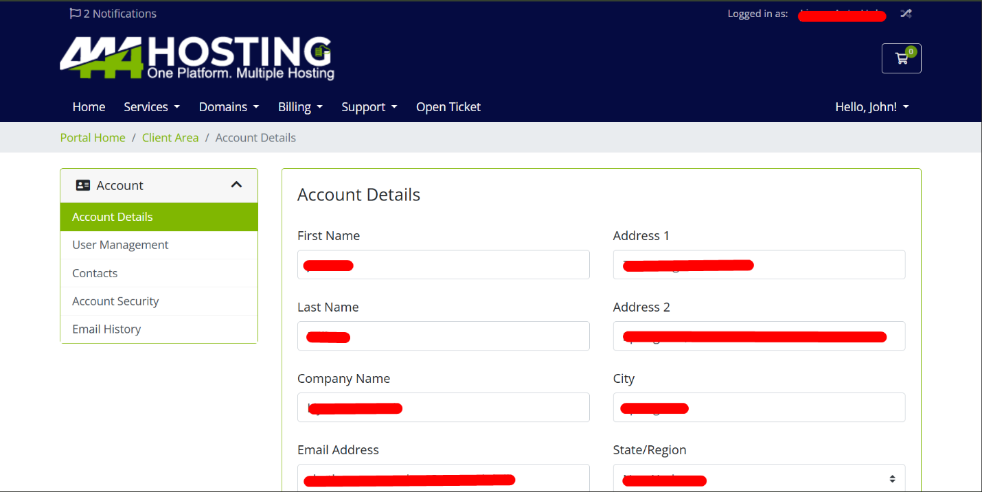 Regularly managing your Account Details in the 444Hosting client area ensures your information remains accurate and secure. By keeping your details up-to-date, you can enjoy uninterrupted communication and seamless access to your hosting services, helping you stay in control of your account.